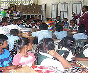 Outreach teaches an after school literacy class in the renovated